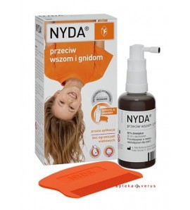 Preparat NYDA jest przeznaczony do fizykalnego usuwania wszy z włosów na glowie.(Pediculus humanus capitis). Preparat NYDA stosowany zgodnie z zaleceniami skutecznie eliminuje nie tylko osobniki dorosłe, ale również nimfy (larwy) oraz jaja wszy (gnidy).