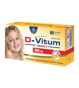 D-Vitum 800 j.m. - suplement diety zawierający witaminę D w postaci kapsułek twist-off. Produkt przeznaczony dla noworodków urodzonych przedwcześnie i dzieci od 1 roku życia.