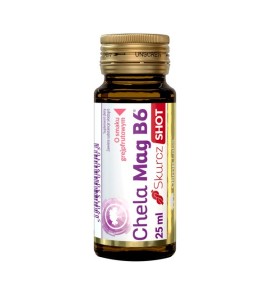 Olimp Chela-Mag B6® Skurcz Shot to źródło wysoko przyswajalnego magnezu (cytrynian magnezu i diglicynian magnezu - chelat aminokwasowy Albion™) uzupełnione potasem oraz witaminami z grupy B: tiaminą (wit. B1), ryboflawiną (wit. B2), witaminą B6 oraz B12. Takie połączenie ma na celu wspomóc przede wszystkim w: