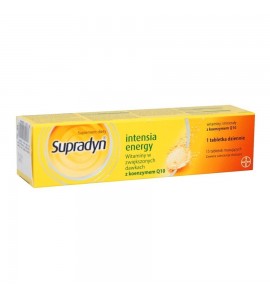 Supradyn Intensia Energy jest suplementem diety przygotowanym z myślą o osobach dorosłych, w okresach wzmożonego wysiłku fizycznego i umysłowego. Preparat zawiera pełną kompozycję witamin i składników mineralnych z dodatkiem koenzymu Q10, których organizm potrzebuje każdego dnia, aby móc zachować pełnię energii przez cały dzień.