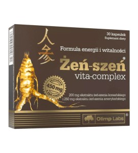 Olimp Żeń-Szeń Vita-Complex stanowi kompozycję wysokiej jakości ekstraktów z dwóch gatunków żeń-szenia: koreańskiego (Panax ginseng C.A.Mev.) i amerykańskiego (Panax quinquefolius L.), standaryzowanych na zawartość ginsenozydów, wzbogacona dodatkowo ekstraktem pieprzu czarnego oraz kompleksem 12 cennych dla organizmu witamin!