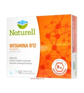 NATURELL Witamina B12 to suplement diety w formie tabletki do ssania Instant. Szczególnie dedykowany osobom na diecie wegetariańskiej bądź wegańskiej, które oparte są na produktach pochodzenia roślinnego, są wyjątkowo narażone na niski poziom witaminy B12 w diecie.