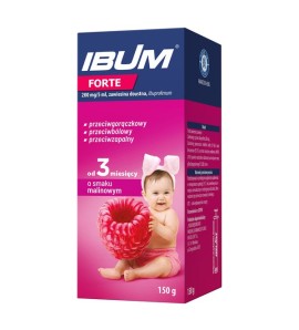 IBUM FORTE to bezpieczny i sprawdzony lek na gorączkę i ból u dzieci. Szybko obniża gorączkę, bo w 15 minut i działa nawet do 8 godzin . Na najczęstsze dziecięce dolegliwości. Dawka FORTE to mało płynu do podania. Bez cukru i bez barwników