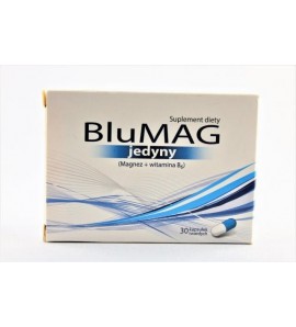 Suplement diety Blumag jedyny to połączenie dwóch składników aktywnych - magnezu i witaminy B6, w ilościach pokrywających w 100% dzienne zapotrzebowanie.