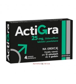 Lek Actigra zawiera substancję czynną syldenafil, stosowany jest w leczeniu zaburzeń erekcji u dorosłych mężczyzn.