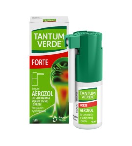 Tantum Verde to lek w formie spray'u stosowany miejscowo przy bakteryjnych i wirusowych infekcjach jamy ustnej, gardła oraz krtani. Ma odświeżający, delikatnie miętowy smak.