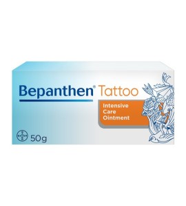 Maść Bepanthen Tattoo delikatnie chroni skórę, tworząc na niej przezroczystą, przepuszczającą powietrze warstwę. Produkt – przebadany klinicznie na wytatuowanej skórze – pomaga zachować piękno tatuażu i dbać o skórę.