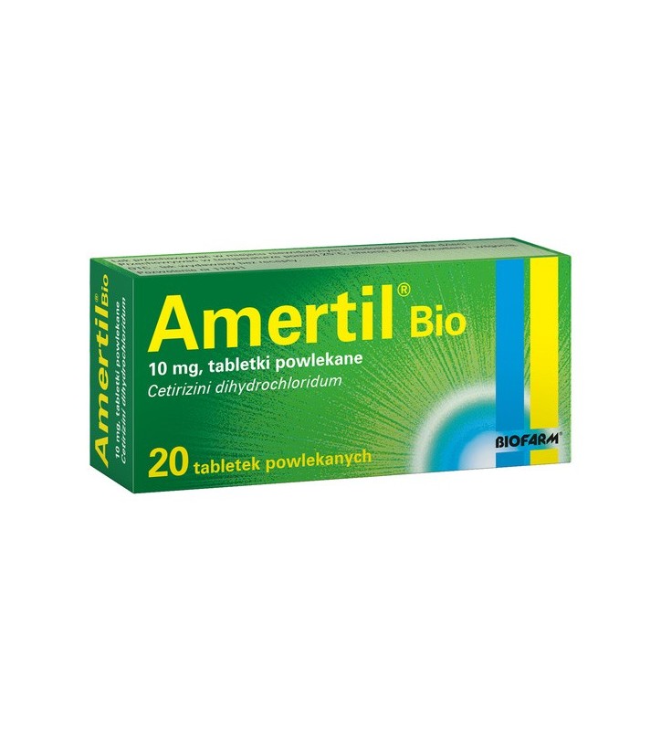 Substancją czynną leku Amertil Bio jest cetyryzyny dichlorowodorek. Jedna tabletka powlekana zawiera 10 mg cetyryzyny dichlorowodorku.