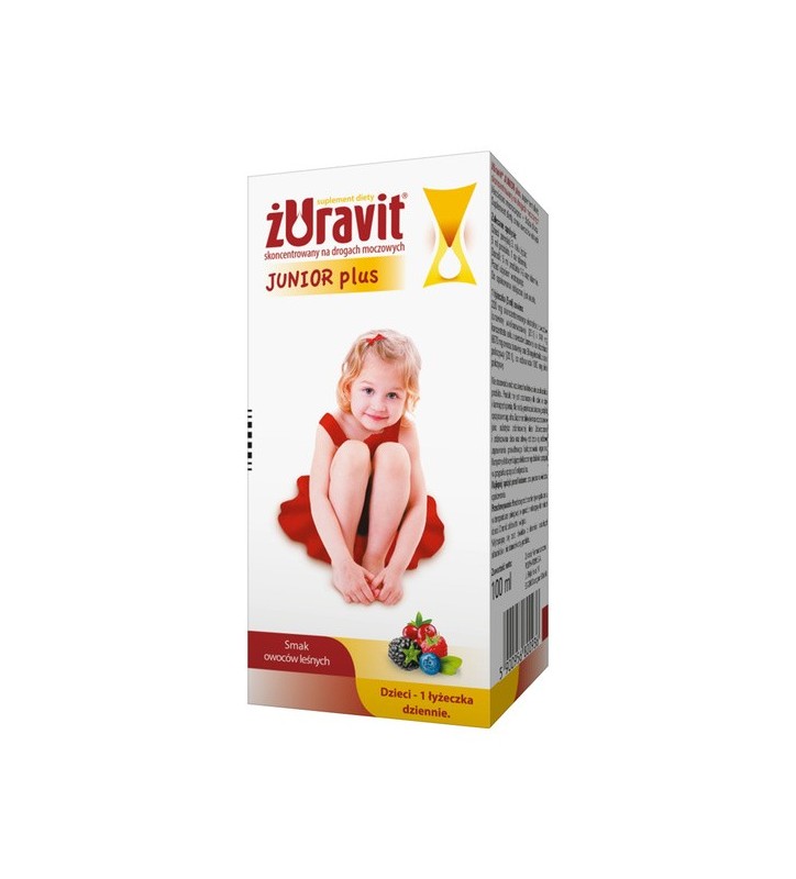 Żuravit Junior Plus to suplement diety w postaci syropu, który zawiera ekstrakt z owoców żurawiny wielkoowocowej (Vaccinium macrocarpon), koncentrat soku z owoców żurawiny, ekstrakt z ziela pokrzywy (Urtica dioica) oraz witaminy: B6 i B12. Produkt wspomaga funkcje wydalnicze układu moczowego i nerek, przyczyniając się tym samym do prawidłowego funkcjonowania dróg moczowych.