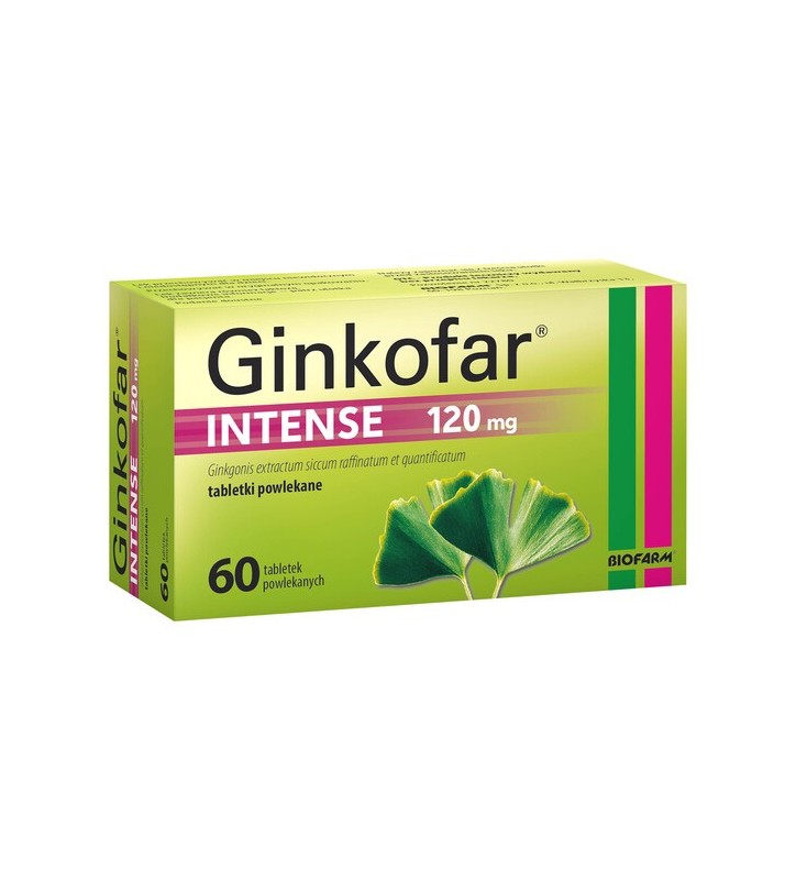 Ginkofar intense przyjmuje się doustnie, popijając tabletkę płynem, leczenie powinno trwać przynajmniej 8 tygodni, w przypadku pogorszenia objawów lub braku efektu po 3 miesiącach stosowania, należy zwrócić się do lekarza.