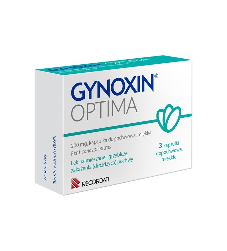 Gynoxin Optima to lek stosowany w infekcjach intymnych, w grzybiczych i mieszanych zakażeniach. Produkt ma formę kapsułek dopochwowych, zawierających fentikonazol o szerokim zakresie działania w drożdżycy miejsc intymnych oraz mieszanych infekcjach pochwy, ponieważ hamuje rozwój bakterii Gram-dodatnich i Gram-ujemnych. Gynoxin Optima przeznaczony jest dla kobiet powyżej 16. roku życia.