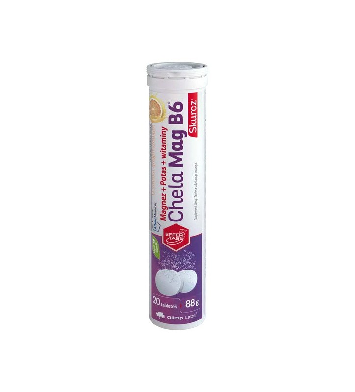 Olimp Chela Mag B6® Skurcz to suplement diety w formie doskonale rozpuszczających się tabletek musujących. Preparat marki Olimp Labs zawiera magnez w postaci chelatu aminokwasowego Albion™, potas oraz witaminy: B1, B2, B3, B6, B12 oraz biotynę.