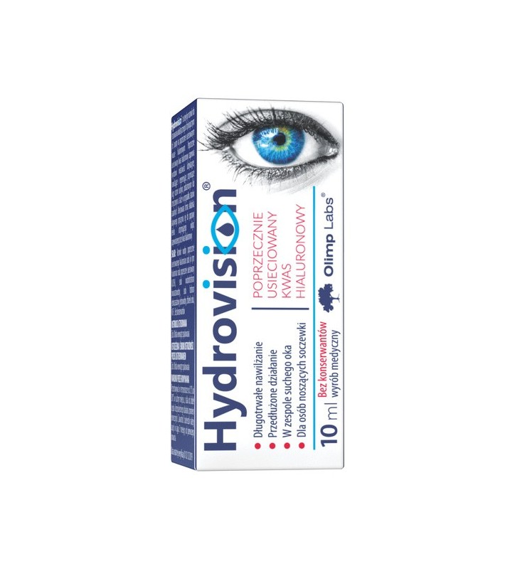 - Krople do oczu Hydrovision posiadają właściwości lubrykacyjne, długotrwale nawilżają oraz właściwości naprawcze stosowane m.in. do łagodzenia uczucia suchości, bolesności, zaczerwienienia oraz zmęczenia oczu