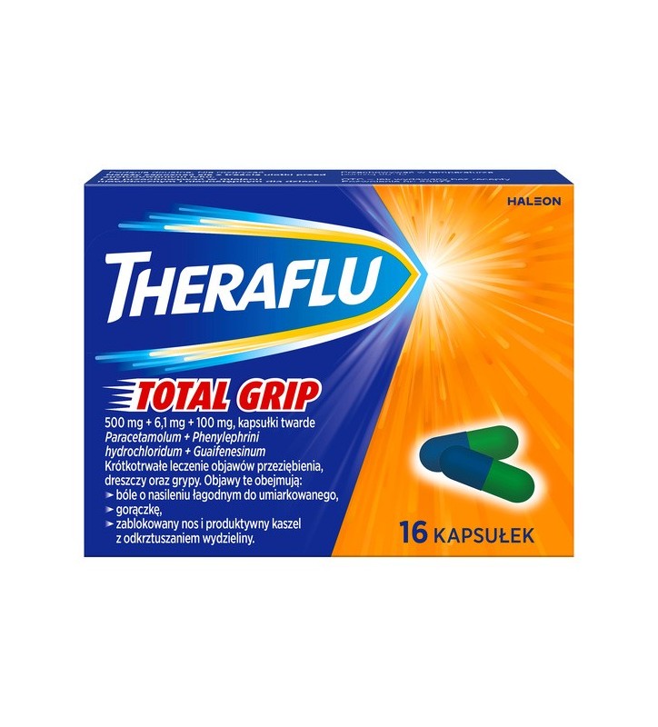 Kapsułki Theraflu Total Grip to unikalny lek, który jest gotowy do działania już po 10 minutach*. Pomaga zwalczać te najcięższe objawy grypy, nawet kaszel.