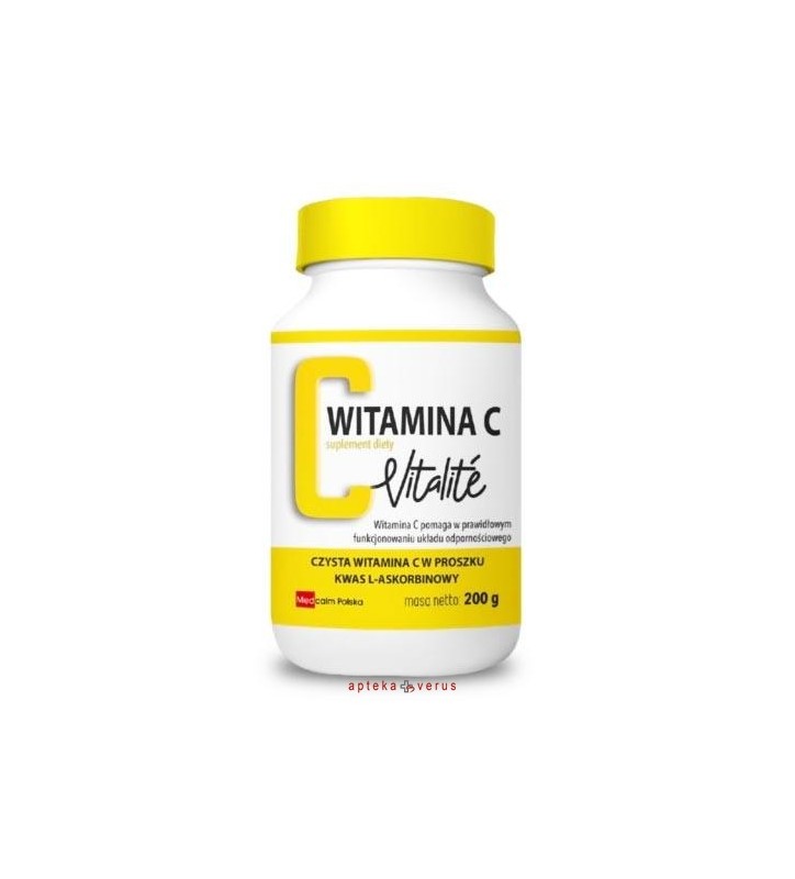 Czysta witamina C w proszku – kwas L-askorbinowy. Witamina C pomaga w prawidłowym funkcjonowaniu układu odpornościowego.