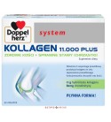 Doppelherz® system Kollagen 11.000 PLUS zawiera kompozycję odpowiednio dobranych składników odżywczych przyczyniających się do utrzymania prawidłowego funkcjonowania mięśni i kości (dzięki obecności witaminy D), wsparciu prawidłowego stanu tkanek łącznych (dzięki zawartości miedzi) oraz pomagających w optymalnej produkcji kolagenu w celu zapewnienia prawidłowego funkcjonowania chrząstki i kości (dzięki witaminie C).