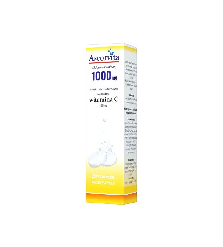Ascorvita 1000 mg to produkt leczniczy w postaci tabletek musujących o smaku cytrynowym. Przeznaczony dla młodzieży powyżej 12 roku życia i dorosłych w stanach niedoborów lub zwiększonego zapotrzebowania na witaminę C.
