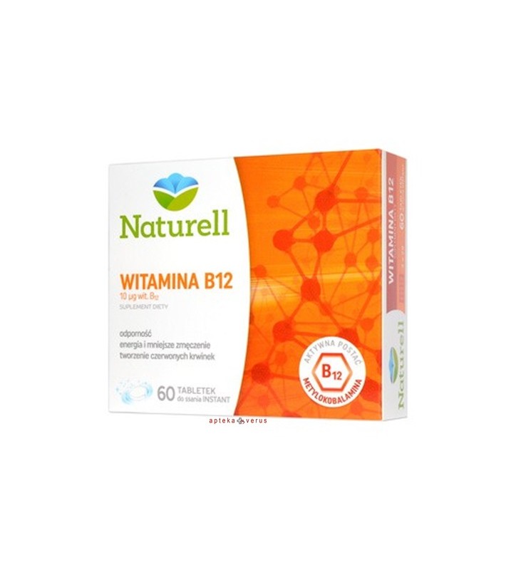 NATURELL Witamina B12 to suplement diety w formie tabletki do ssania Instant. Szczególnie dedykowany osobom na diecie wegetariańskiej bądź wegańskiej, które oparte są na produktach pochodzenia roślinnego, są wyjątkowo narażone na niski poziom witaminy B12 w diecie.