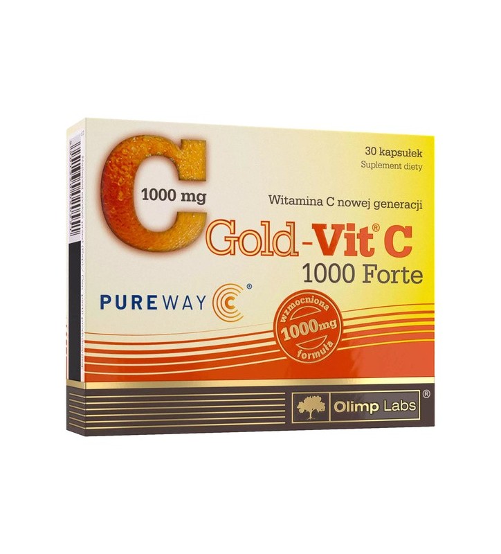 Olimp Gold-Vit® C 1000 Forte - suplement diety w kapsułkach, zawierający witaminę C nowej generacji PureWay-C® w zwiększonej dawce. PureWay-C® to opatentowana forma witaminy C – mikrokapsułkowany kompleks kwasu L-askorbinowego i naturalnych wosków roślinnych (tłuszczowych metabolitów) – przyjazna dla żołądka, wspomagająca układ odpornościowy, wzbogacona bioflawonoidami cytrusowymi.